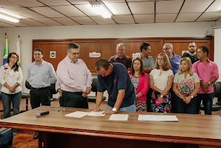 assinou nesta segunda-feira (15/01), no salão nobre da prefeitura, mais três