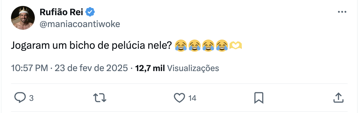 Os seguidores do perfil de “humor” fascista Joaquin Teixeira estão jubilantes. “Quase arrancou a cabeça do socialista. Quanta violência, jogar um boneco de pano num pobre homem”, escreveu um sujeito. “O problema dele é que ele ainda está aqui”, disse outro.