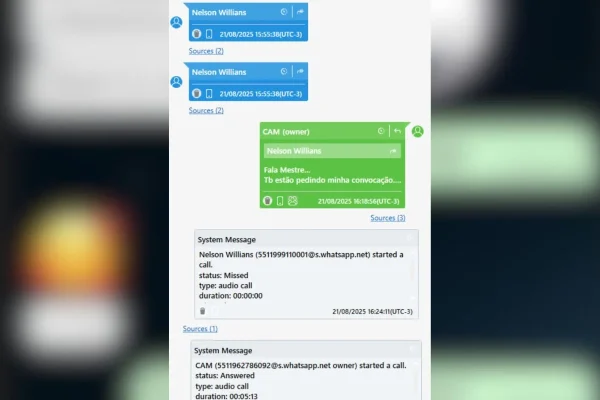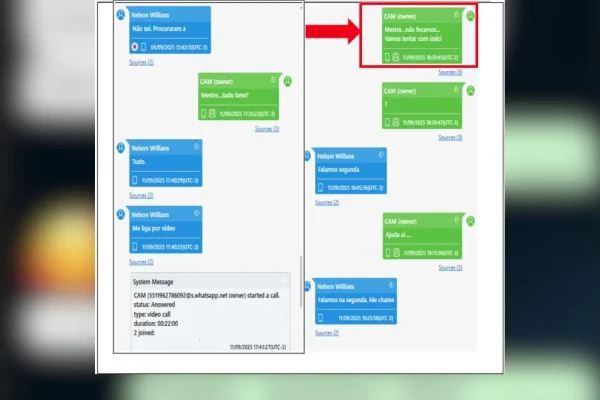 A PF observou ainda que parte das mensagens trocadas entre Camisotti e Wilians foi apagada automaticamente, em razão do uso do recurso de mensagens temporárias do WhatsApp, configurado para excluir conteúdos em 24 horas.
