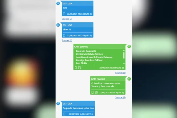 Três dias antes do início efetivo da CPMI, Camisotti trocou mensagens com o contato “GS-USA”, registrado com um número do Texas (EUA). Segundo os investigadores, há indícios de que o interlocutor atua entre São Paulo, Brasília e o Sul do país.