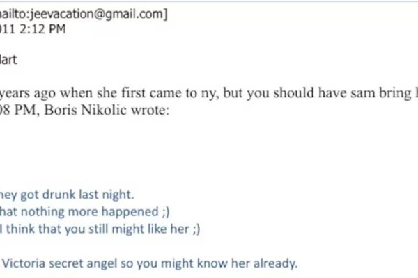 Epstein responde: “Ela ficou no meu apartamento seis anos atrás, quando veio pela primeira vez a Nova York. Mas você deveria pedir para Sam trazê-la aqui. Ela é ótima”. Boris ainda acrescenta: “Você é rápido. Seis anos atrás. Eu deveria saber”.