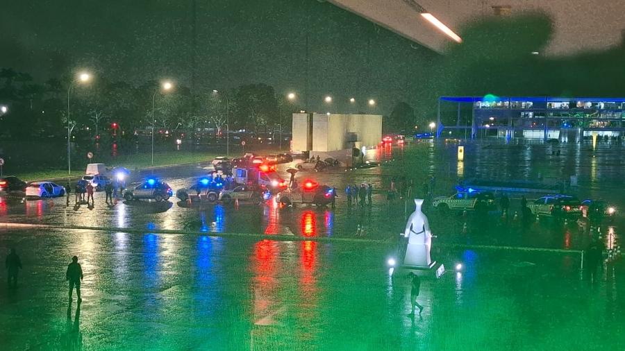 A área da Esplanada dos Ministérios foi isolada, desde a Catedral Metropolitana até a Praça dos Três Poderes, e os prédios do STF e do Congresso Nacional foram evacuados. “Assim que fomos acionados, a PMDF já se deslocou. A nossa preocupação era identificar se havia turistas no local ou servidores das casas. Isolamos toda a área e agora estamos trabalhando com nosso esquadrão de bombas nas varreduras de pontos sensíveis”, pontuou a comandante-geral da Polícia Militar do DF, Ana Paula Habka.